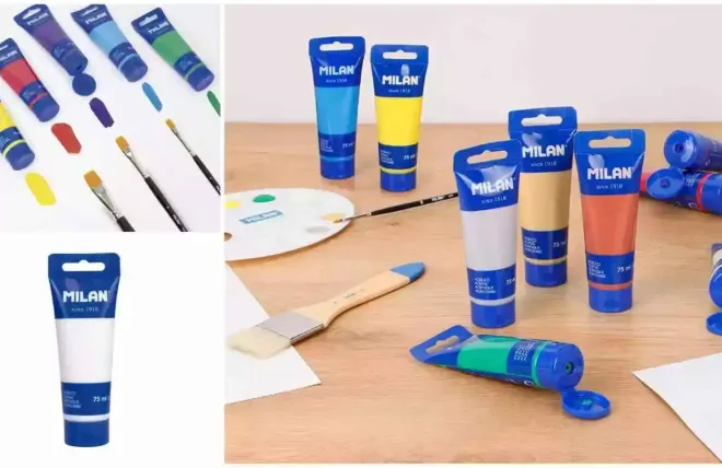 Contiene 10 colores: blanco, amarillo, naranja, rojo, rosa, lila, azul, verde claro, verde y negro. Se pueden crear nuevos tonos combinando dos o más colores.